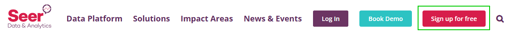 Go to the Seer Data home page and click Sign up for free in the top-right corner.