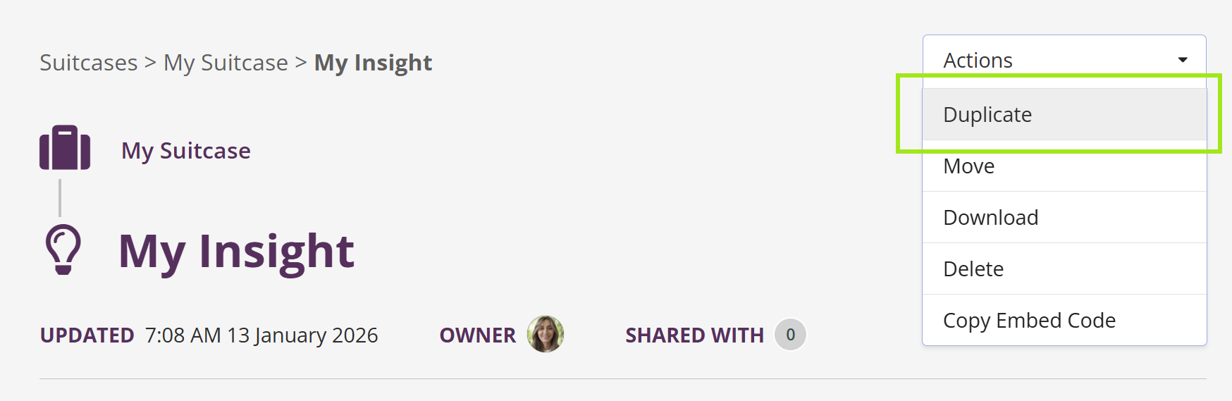 Duplicating Insights makes it easy to reuse proven analysis, adapt Insights for different audiences, or experiment safely without affecting the original version.