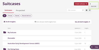 Select Bulk edit. Checkboxes will appear next to each Suitcase.