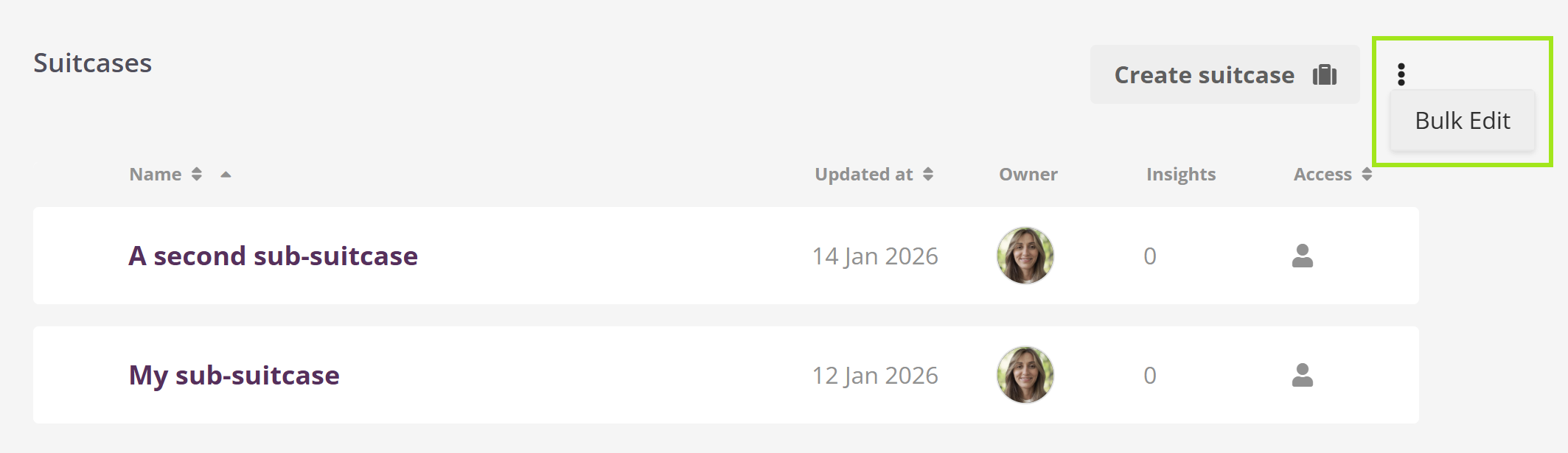 You can move multiple Suitcases at once using the Bulk edit option. This helps you reorganise both top-level Suitcases and sub-Suitcases efficiently.