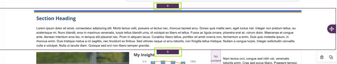 When a row is selected, use the + buttons above or below it to insert a new row of content